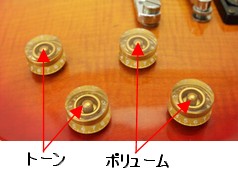 ただ、レスポールタイプの場合はフロントとリア、各々のピックアップにボリュームとトーンがついているので、計4つのツマミがついている。