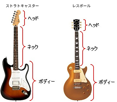 タイプによって形状や素材が若干違うが、ここでは王道のストラトキャスターとレスポールを例に挙げて解説しよう。