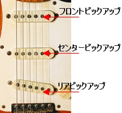 ストラトタイプにはフロント、センター、リアの3つが付いている事が多く、写真のような細長いシングルピックアップが搭載されている。