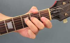 1フレット=人差指、2フレット=中指、3フレット=薬指で押さえます。