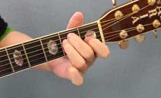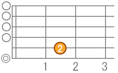 このコードは6弦開放の“ミ”がルートなので、6弦はしっかり鳴らしましょう。