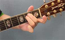 Amを押さえた状態から、そのフォームのまま1弦ずつ上(低音弦側)に移動させます。