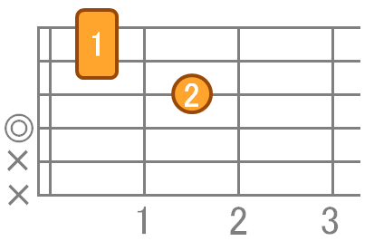 薬指はそのままで、人差指で1弦1フレット、中指で3弦2フレットを押さえます。
