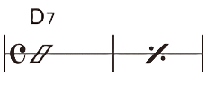 ちなみに2弦1フレットの人差指は、CからAm、D7まで固定。