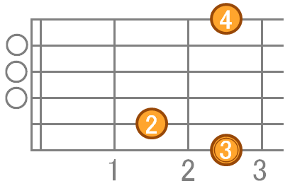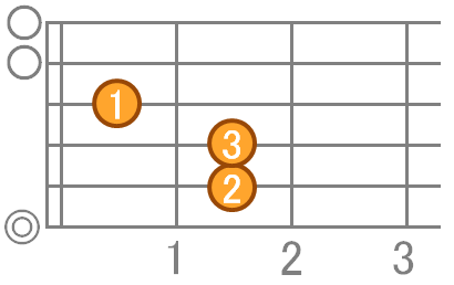 EからDへのチェンジは、人差指は離してしまわず、3弦1フレットから3弦2フレットにスライドさせる感じで移動するとスムーズ。