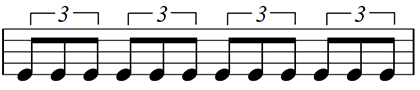 例えば、4分音符で「タン・タン・タン・タン」となっているとすると、3連符は、「タタタ・タタタ・タタタ・タタタ」となります。