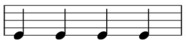 4分音符とは、黒たまに棒が伸びただけで、旗のない音符です。