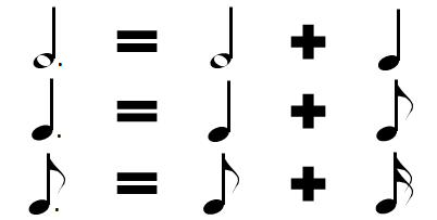例えば上の付点4分音符の場合は、4分音符+8分音符となります。