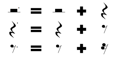 例えば、付点4分休符=4分休符+8分休符ですし、付点8分休符=8分休符+16分休符となります。