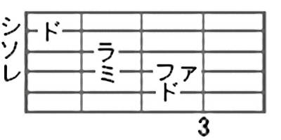 ミとソの間はフレット3つ分ですね。